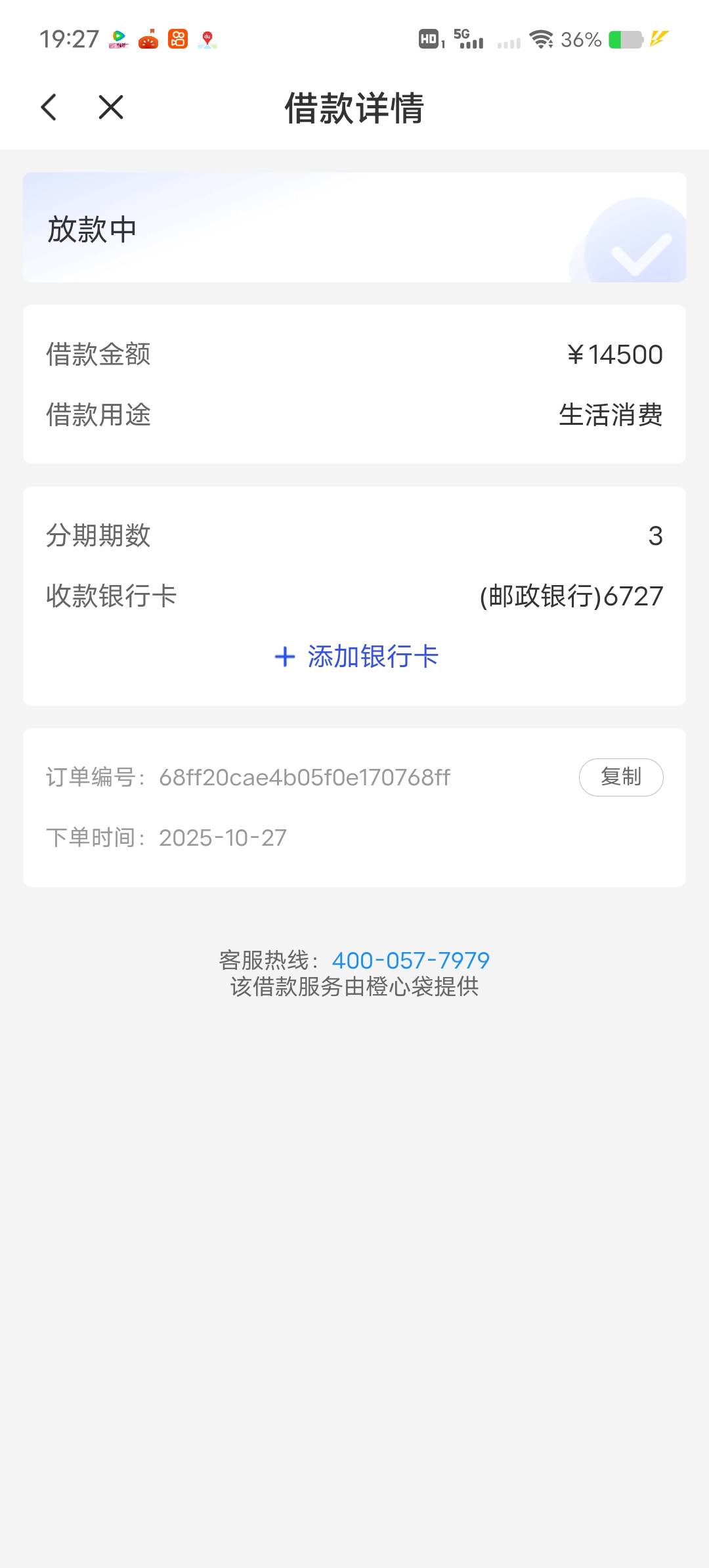 27号凌晨申请,现在毛没得条,一样是放款中