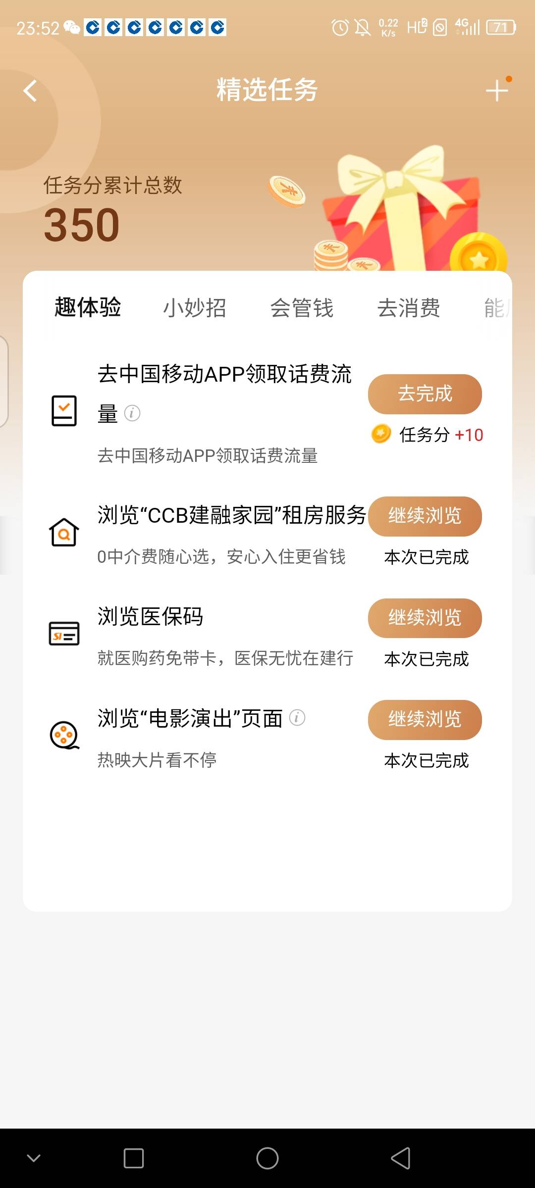建行任务积分更新了,又出了一个任务,兄弟们冲啊