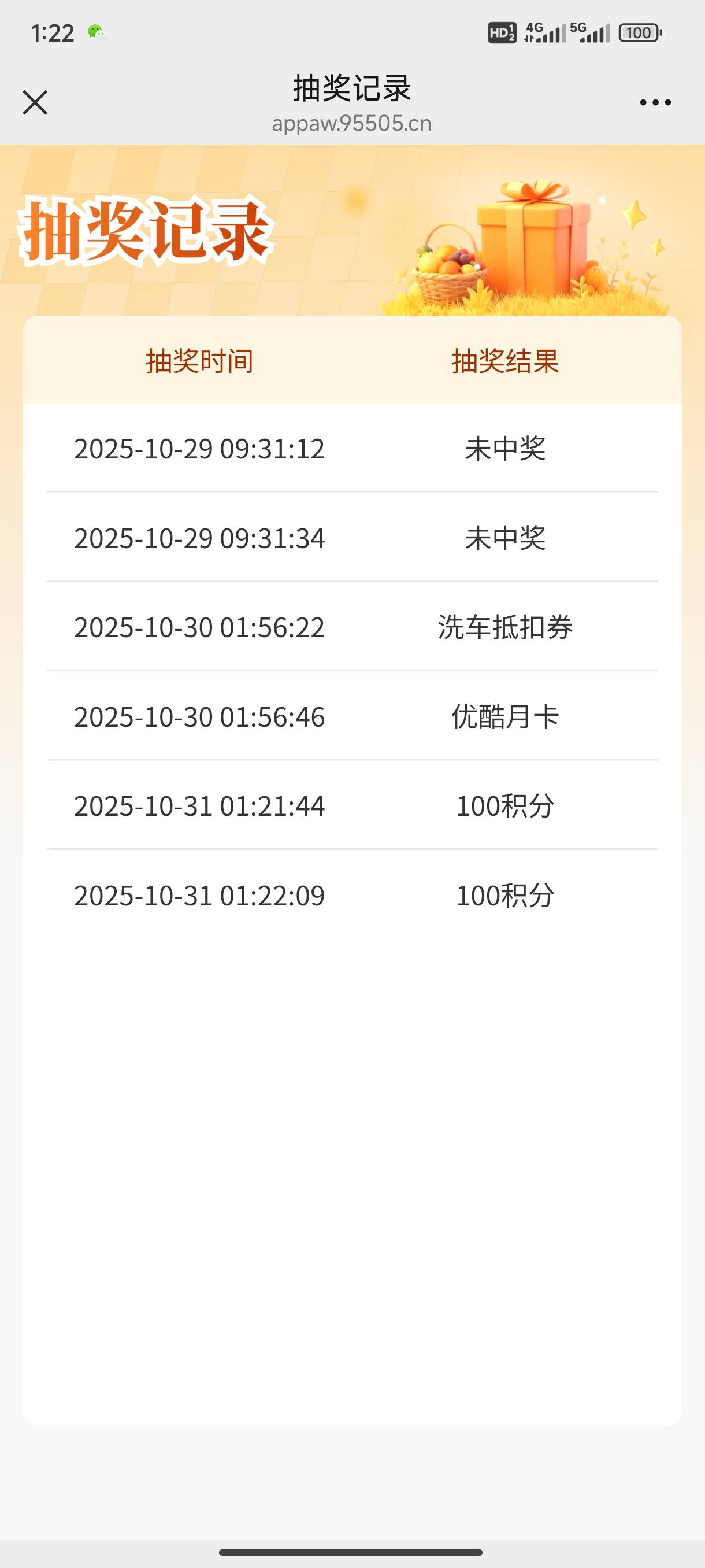 跟我一样,就中国一次优酷。其他都是积分未中奖