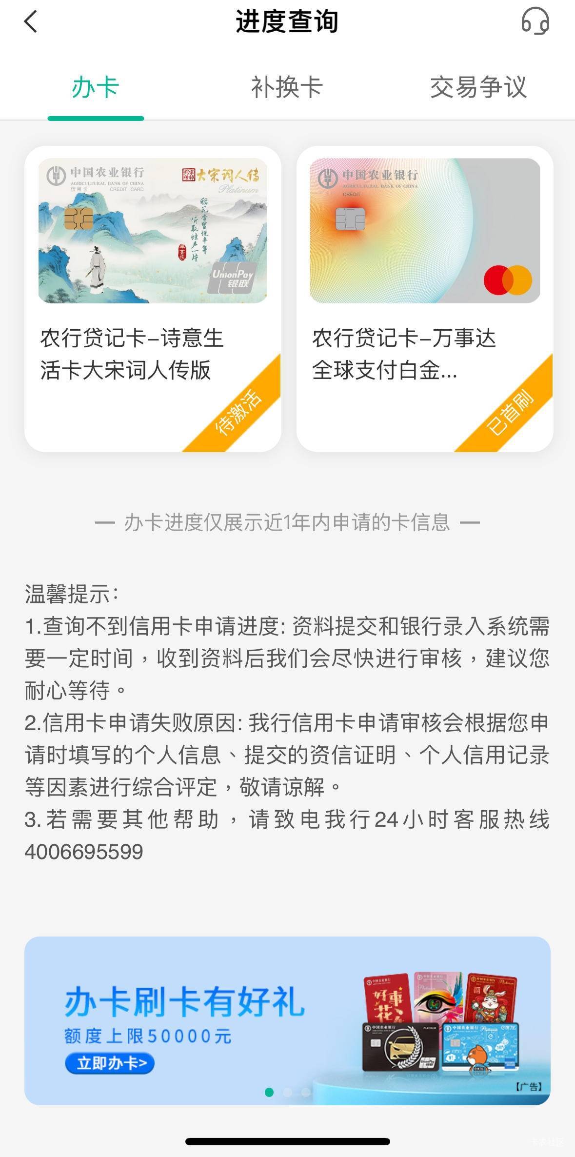 农行下卡,首卡半年前万事达29k,二卡大宋词人秒P42k。
