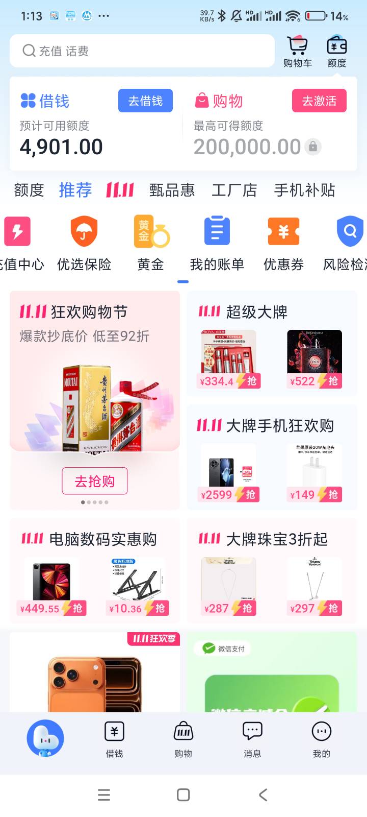 时间大师 发表于 2025-11-03 02:03 没敲门,这个会变的,我昨天下午借800,到了,然后又可以借100,然后又可以借100,后面有弹出1200,不行了,刚刚过了0点,显示又可以借1100,又可以了