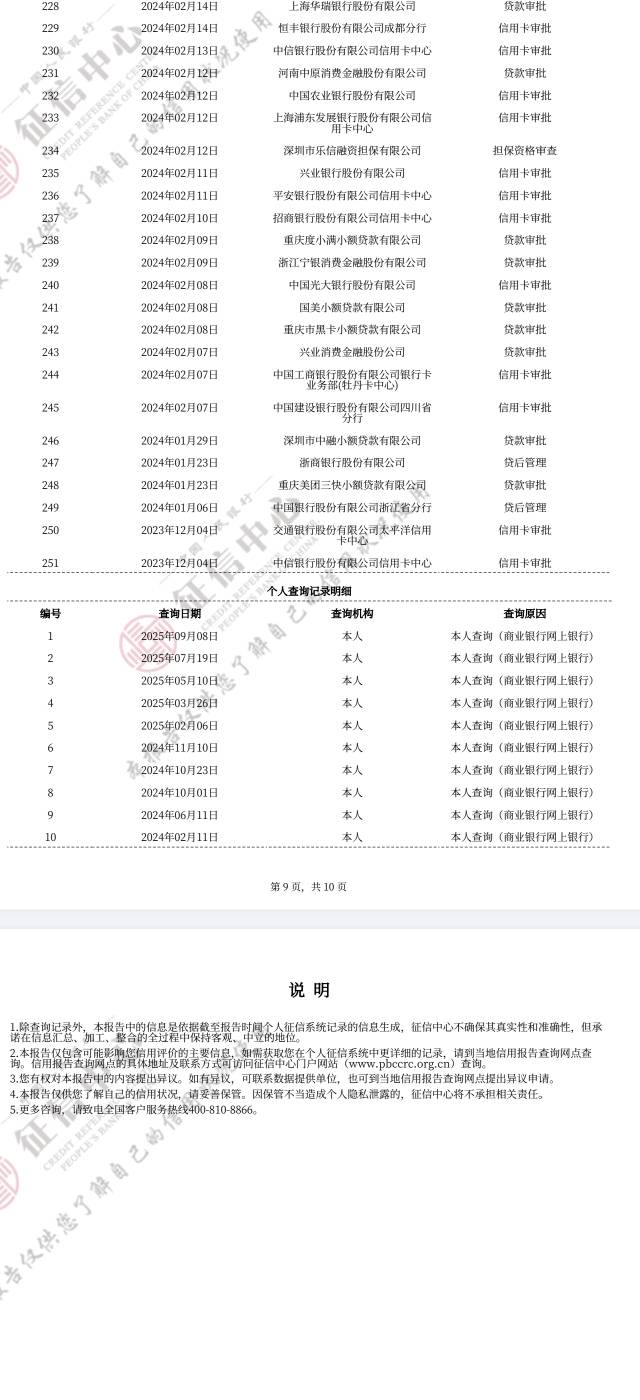 帮我看看这征信黑不黑哥哥姐姐弟弟妹妹们,查询251条,养多久可以申请信用卡