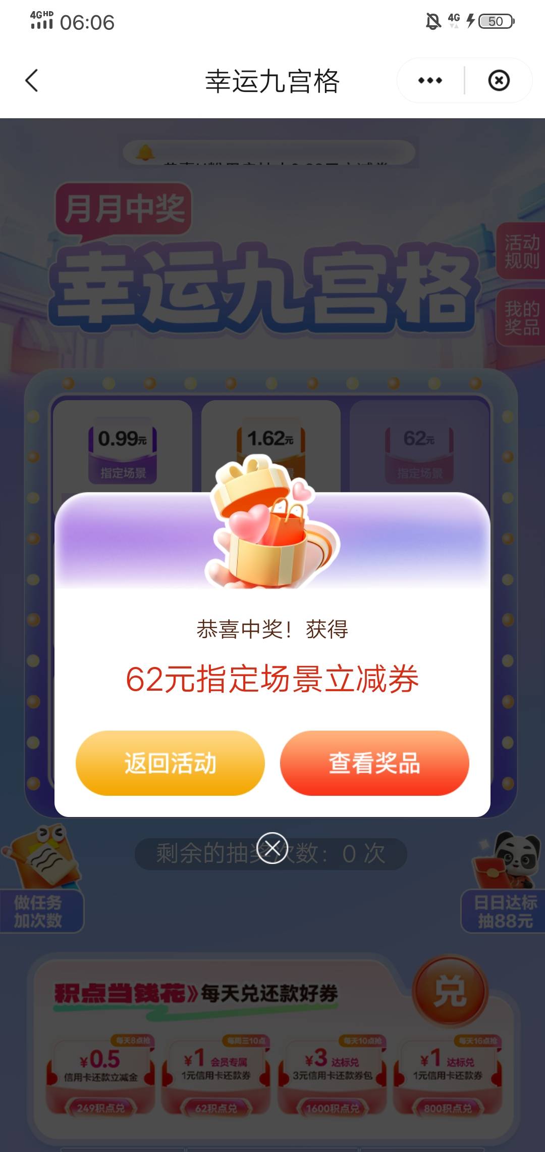 云闪付U惠广东九宫格成了,之前顶实名好多app完成不了任务了,就一次机会中了