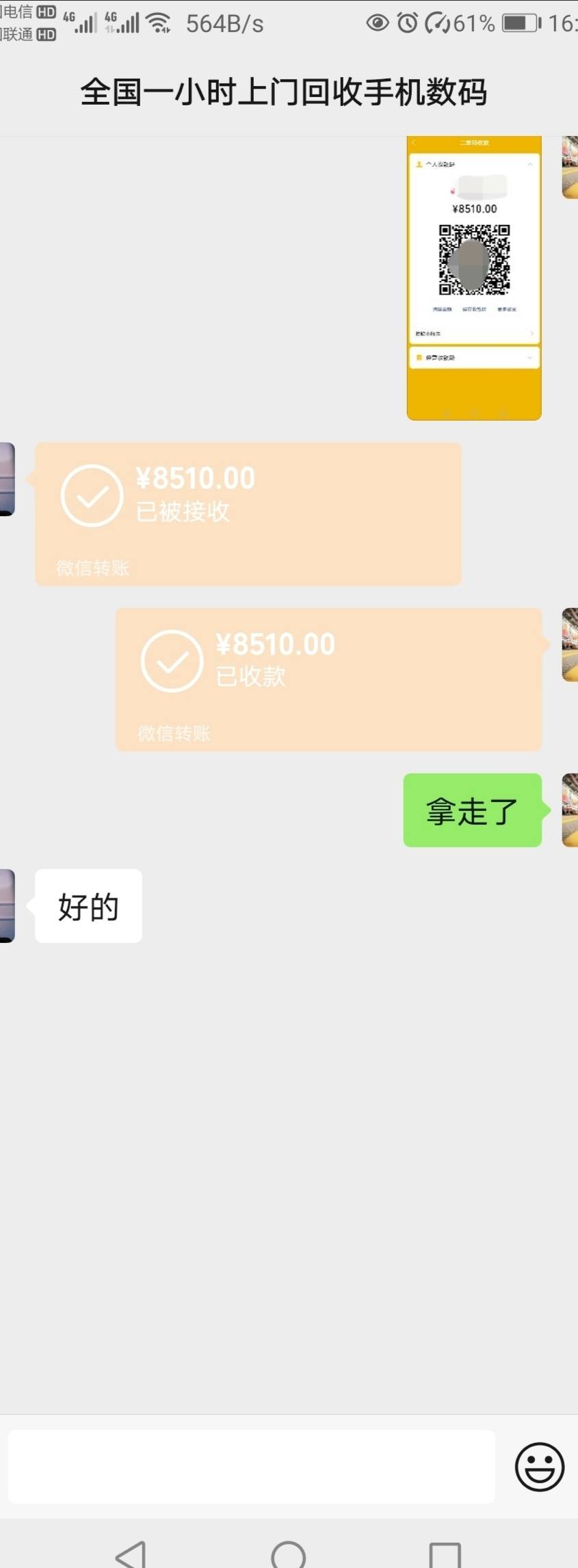 昨天联系完↑门回收