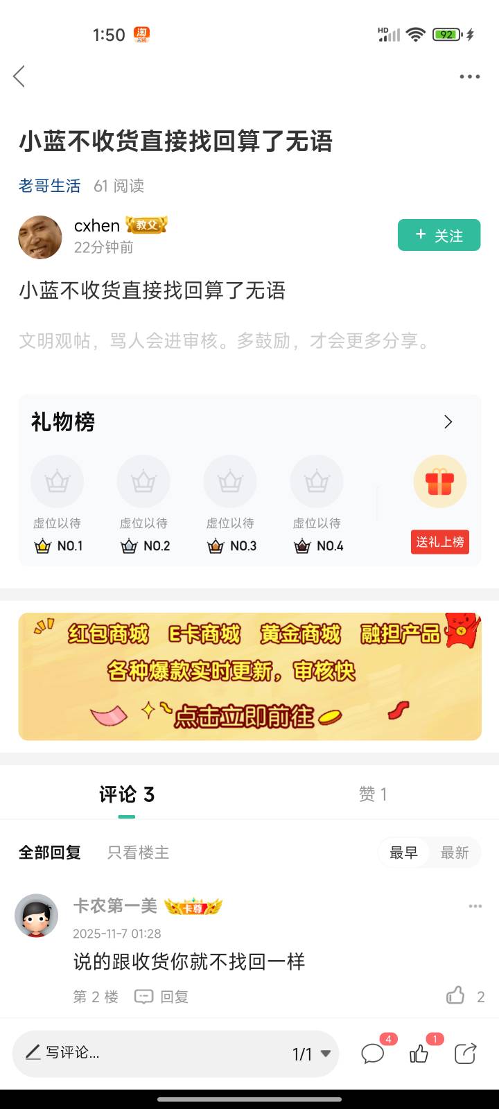 美食作家玉刚 发表于 2025-11-07 02:07 催他,让他收货,不收就找回跟他说,他说不定没号用会收,