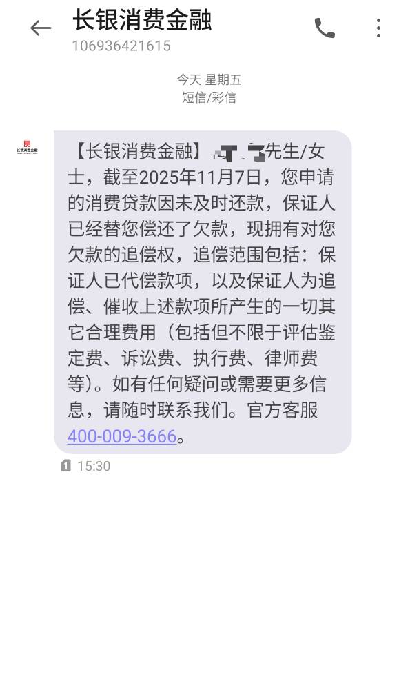 长银发这个短信,这是代偿了?