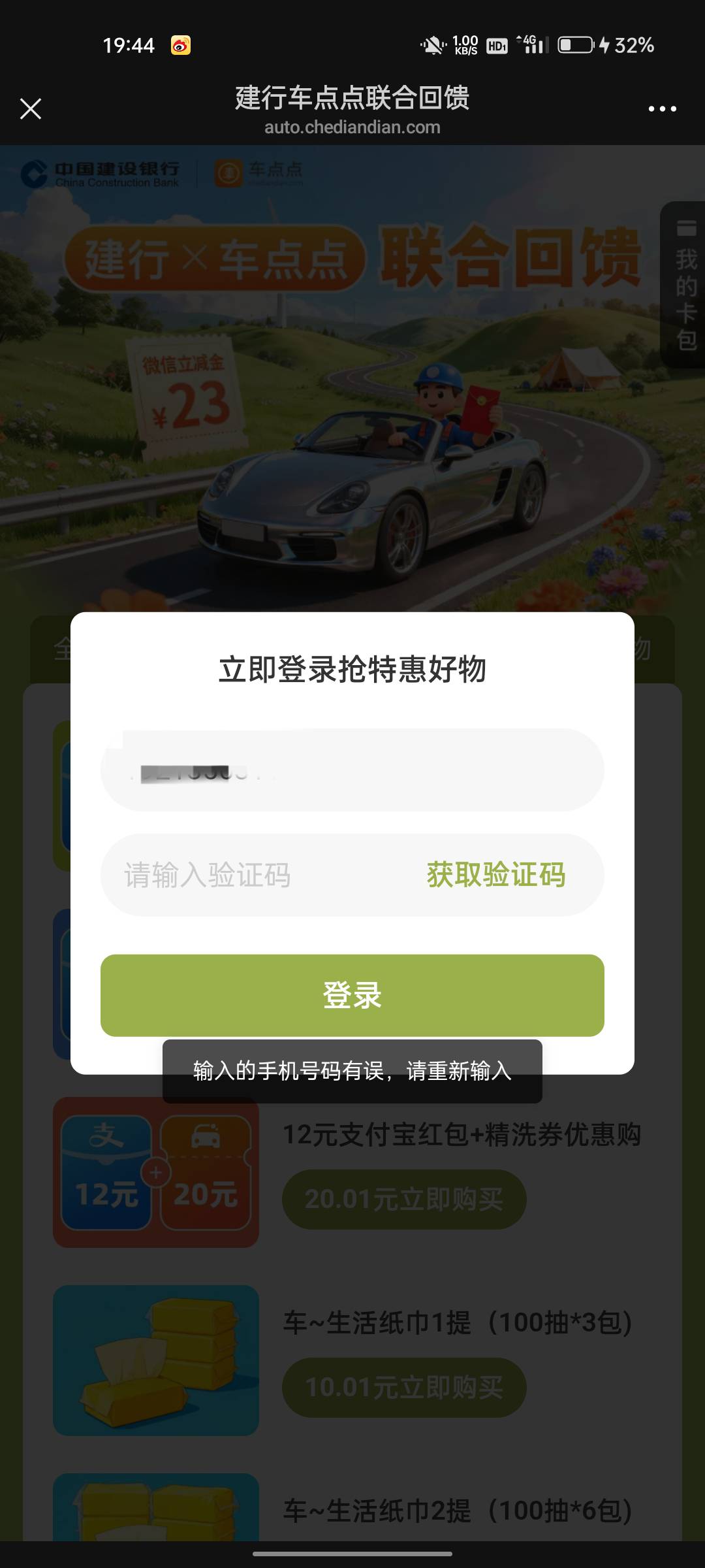 老哥们,这是什么情况,车点点小程序能登上,从链接进输手机号就是错误,这种咋整?