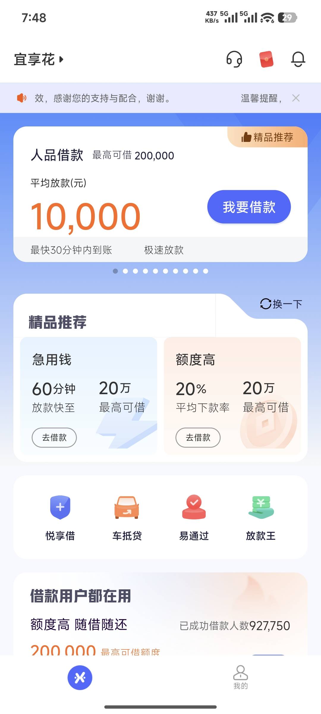 不懂就问,宜享花还有希望下款不,还是T路了,T路就注销了