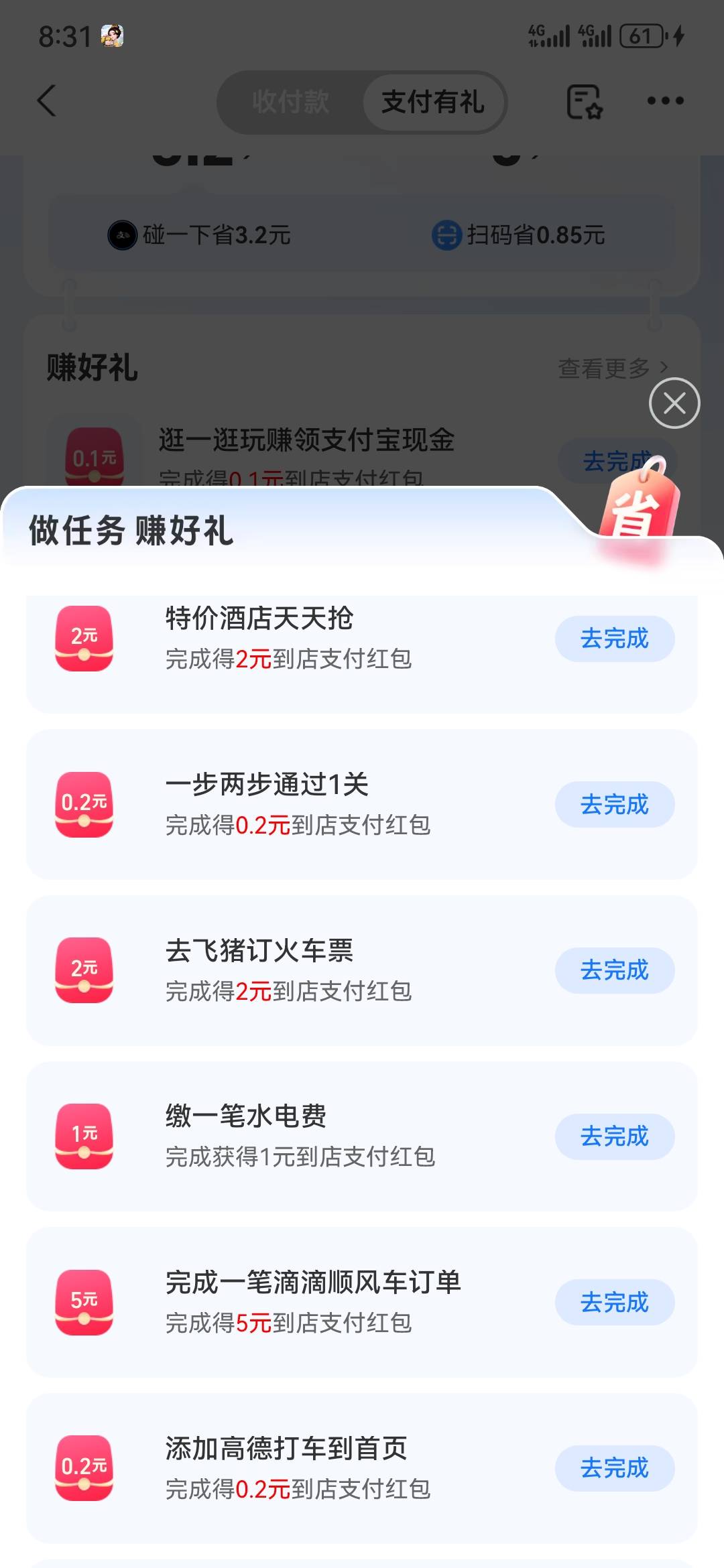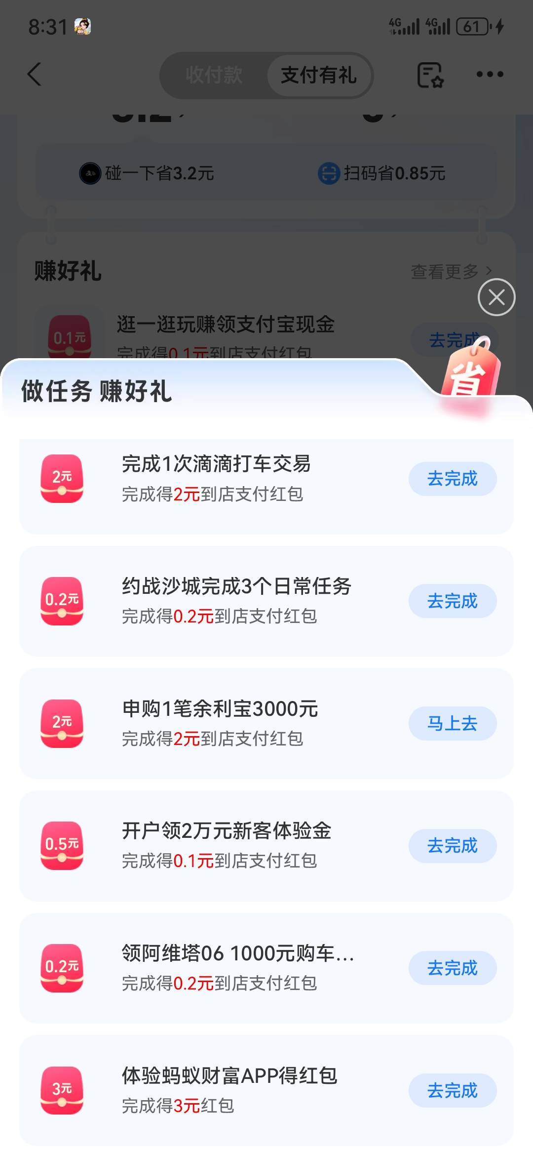 支付宝,支付有礼,任务,一个号,20多毛