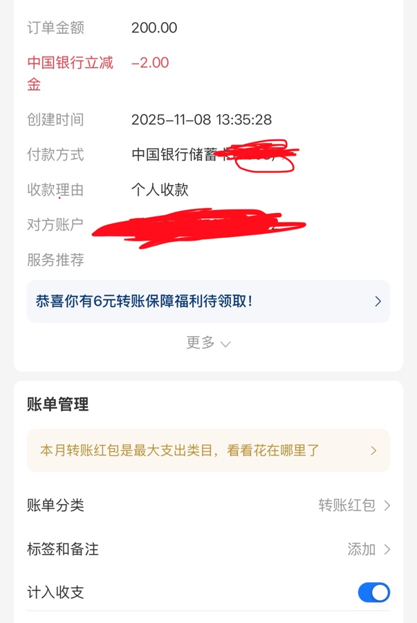 广州中国银行大小号收款200-2 ,2次