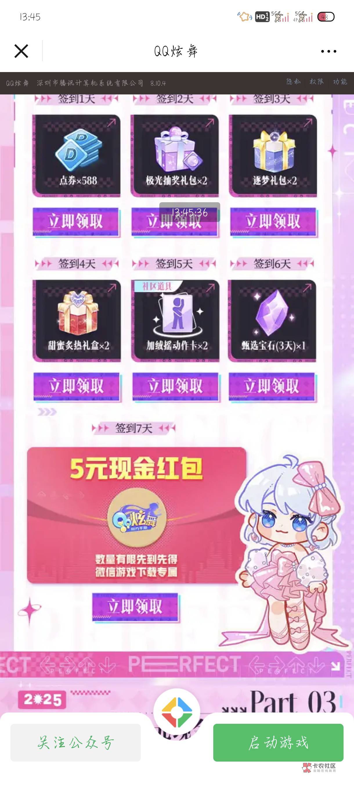 炫舞不知道还有没有?没有的话可以签到领个5毛https://game.weixin.qq.com/cgi-bin/actnew/newportalact/227381/Y5zEkETjqH4x0W36q39L3RLoHW9V2O1Cg--NAN3nDP8/main_page?act_id=227381&k=Y5zEkETjqH4x0W36q39L3RLoHW9V2O1Cg--NAN3nDP8&pid=main_page&appid=wx9b2251fa995dcf56¬iceid=145410214¬ice_id=145410214&msgtype=140&interactive=14002&biz_subtype=5256601&content_id=18014398509882783&ssid=7&abt=&rpt_allpath=7&wechat_pkgid=newportalact__227381_main_page&from_id=3&share_id=pR5f2XjKQMu5jSUQBDuDRg#wechat_redirect¬iceid=145410214