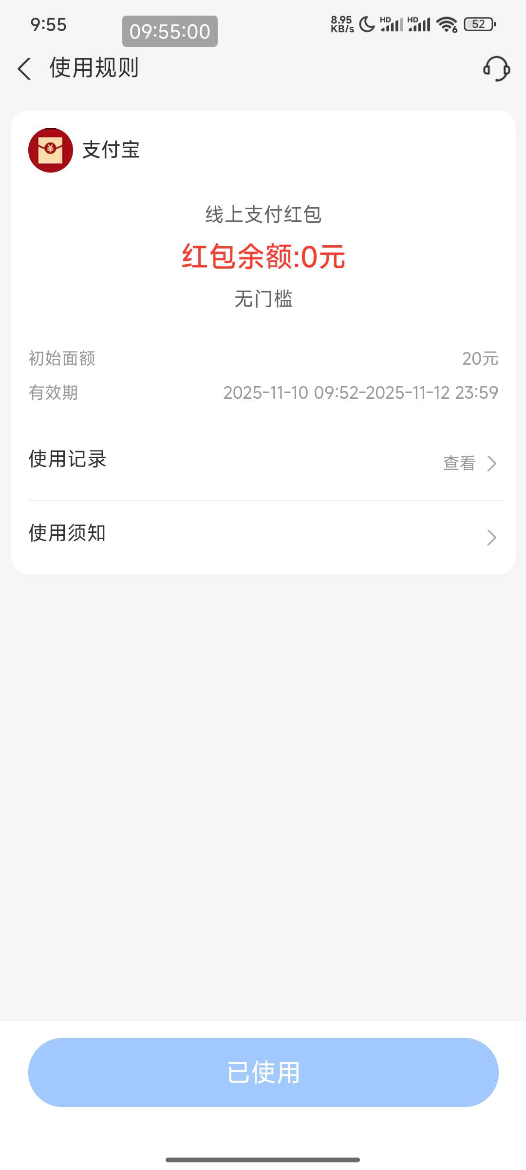 首先那个20红包它不是到店红包不能套,是线上支付红包。可以在淘宝使用