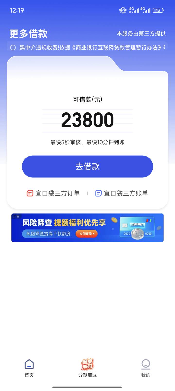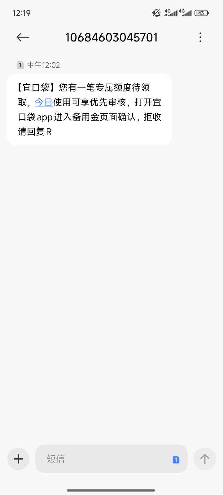 勾子宜口袋 又被骗了 开始发短信来我跑去申请 然后显示额度获取中 我就直接退出去了