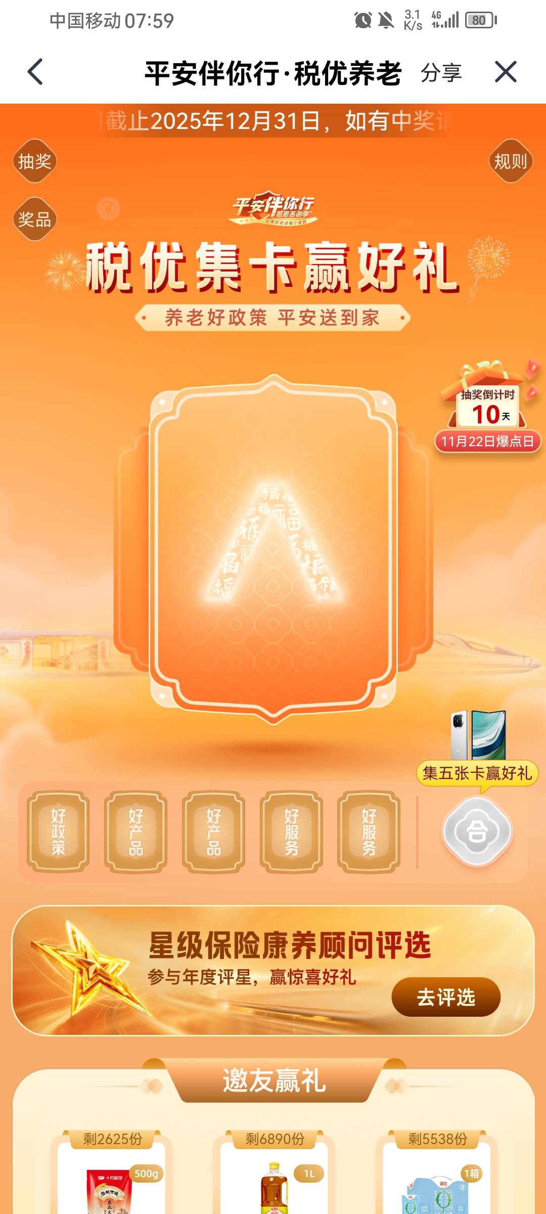 平安金管家税有集卡赢大礼抽了个海天礼盒好运老哥去抽华为手机