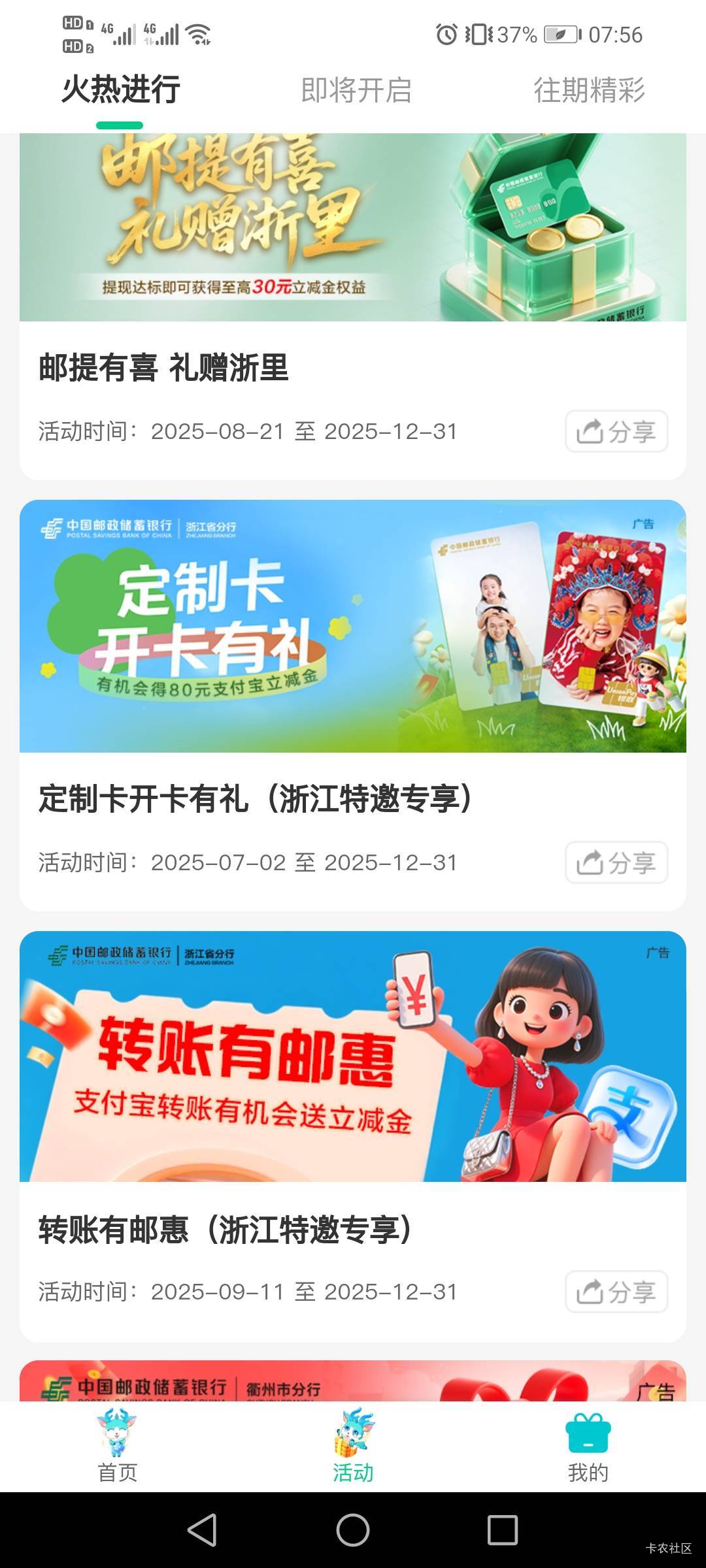 邮储浙江,活动专区本地独一无二—邮惠浙里—点下方活动,下拉找到转账有邮惠(浙江特