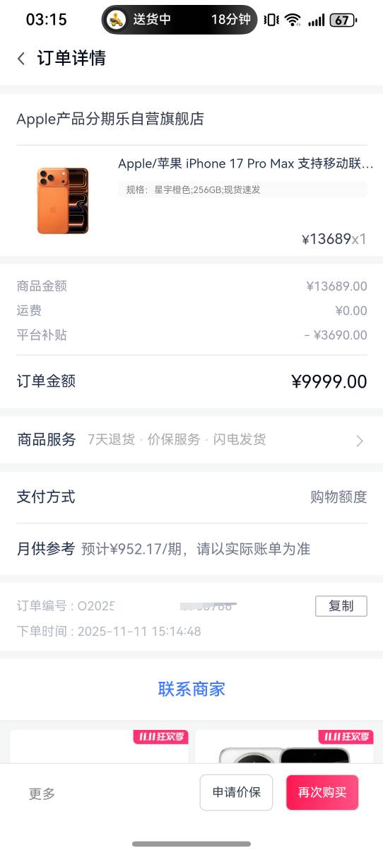 分期乐昨天下午3点下单的17promax现在还在配货中,有没有大佬告知下什么时候发货
