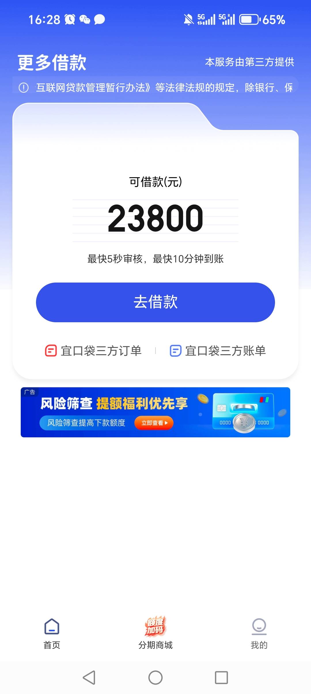 我第一次开了也这样,但昨晚重新试了,一千额度跟一千购物,没卵用不给过,备用金那边也还是显示23800