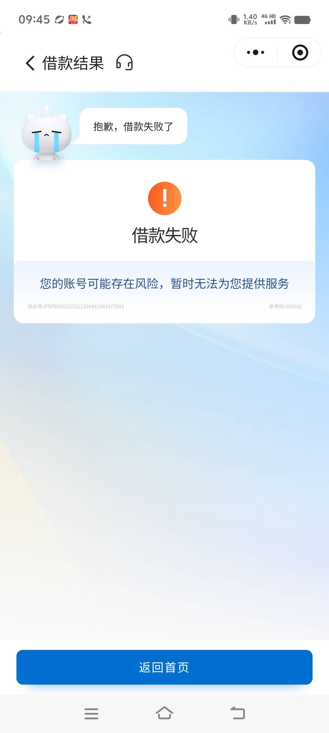 老哥们建信昨天出额 刚刚回访拒了 然后我在提交就变成这样了 这种多久能恢复啊 明天还