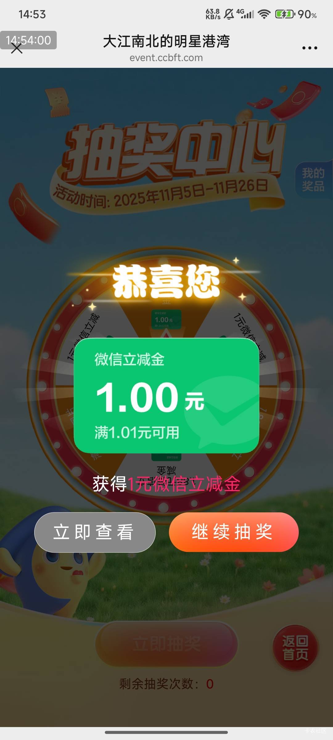 建行活动,1大毛!