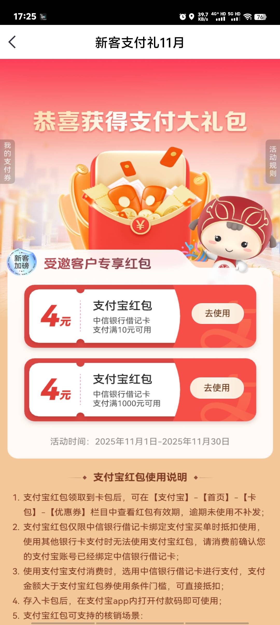 首发加精,中信支付礼11月更新,手机银行直接搜支付就行