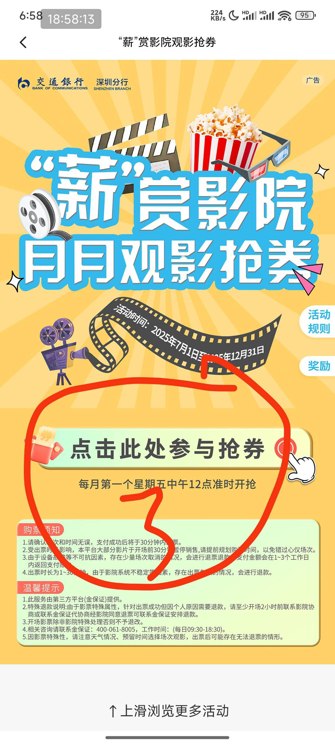 交通银行深圳薪赏影院月月观影抢券活动