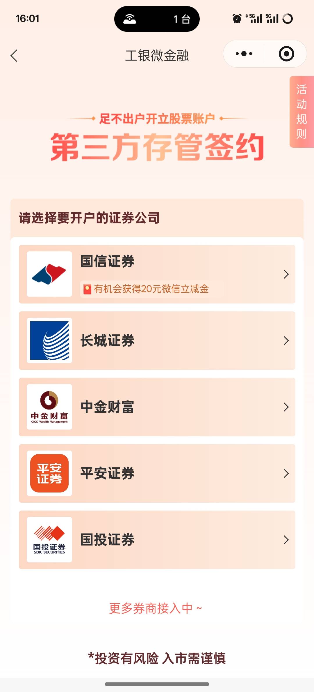 挂壁老大哥 发表于 2025-11-14 16:04 工银微金融小程序,证券开户