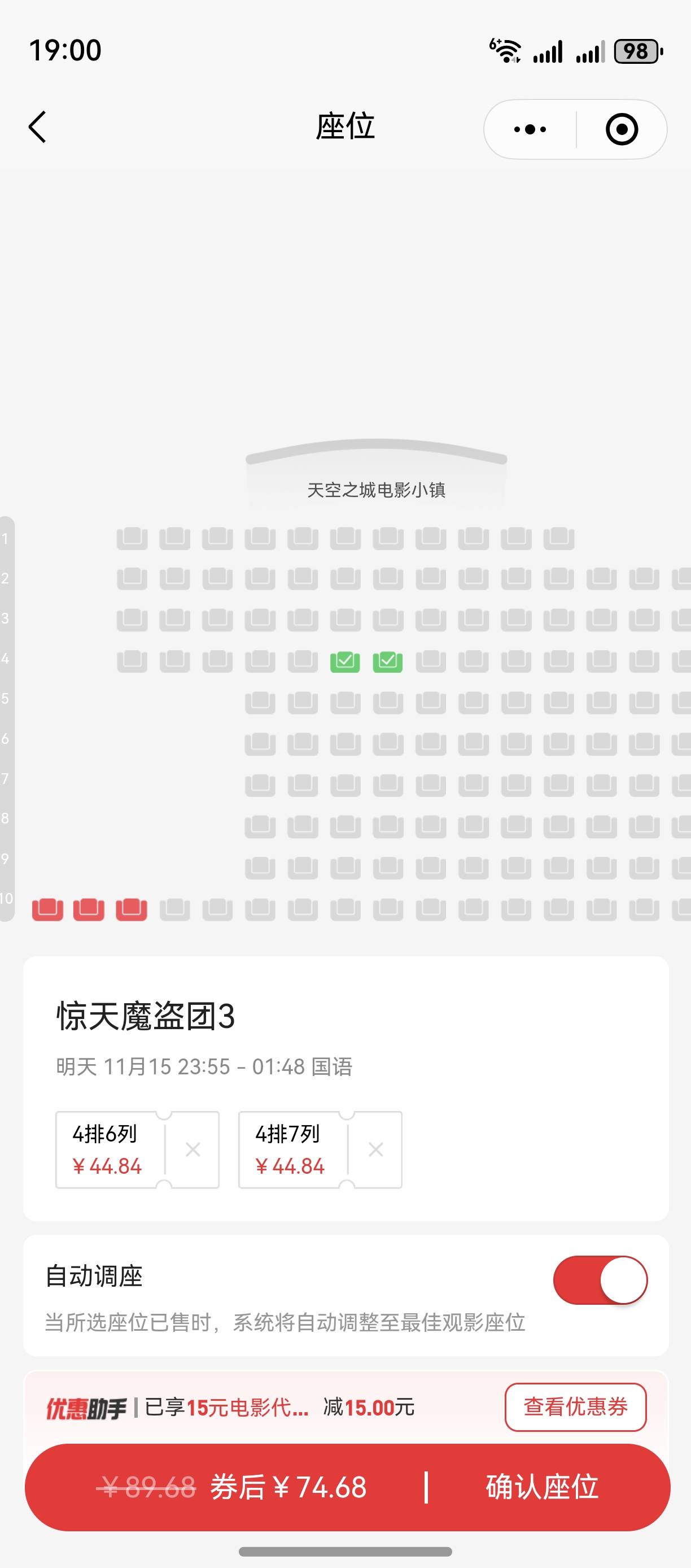 前面发那个什么电影优惠券的,就是个坑批,支付宝直接买都比他便宜,