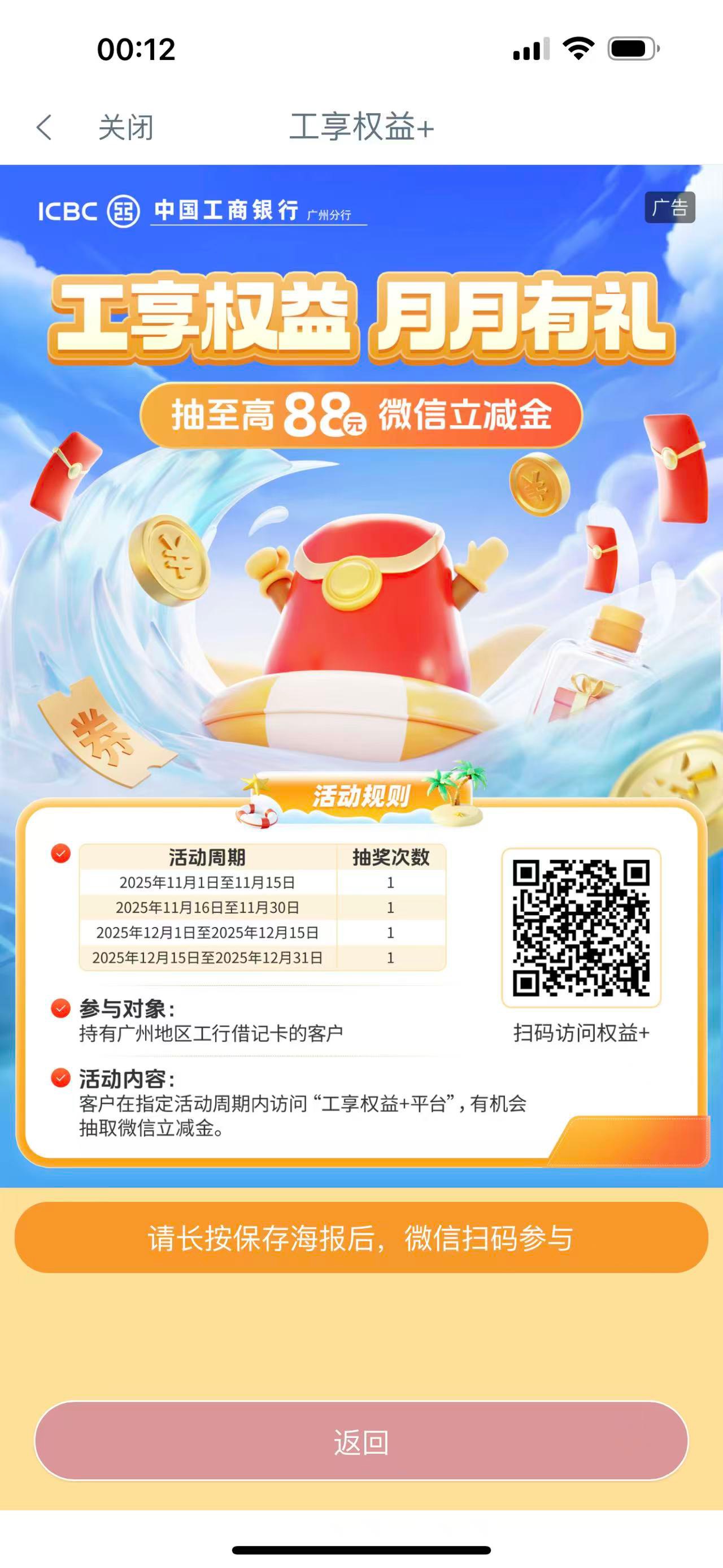 首发加精 开了广州工行卡的老哥们可以去抽 扫码进去有个广告点进去就可以抽 应该没有人头吧