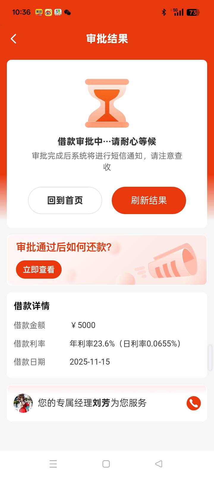 因为富邦贷昨天还款,早上申请了好几个都不行,刚刚报着试试态度试了个中介发的农合的