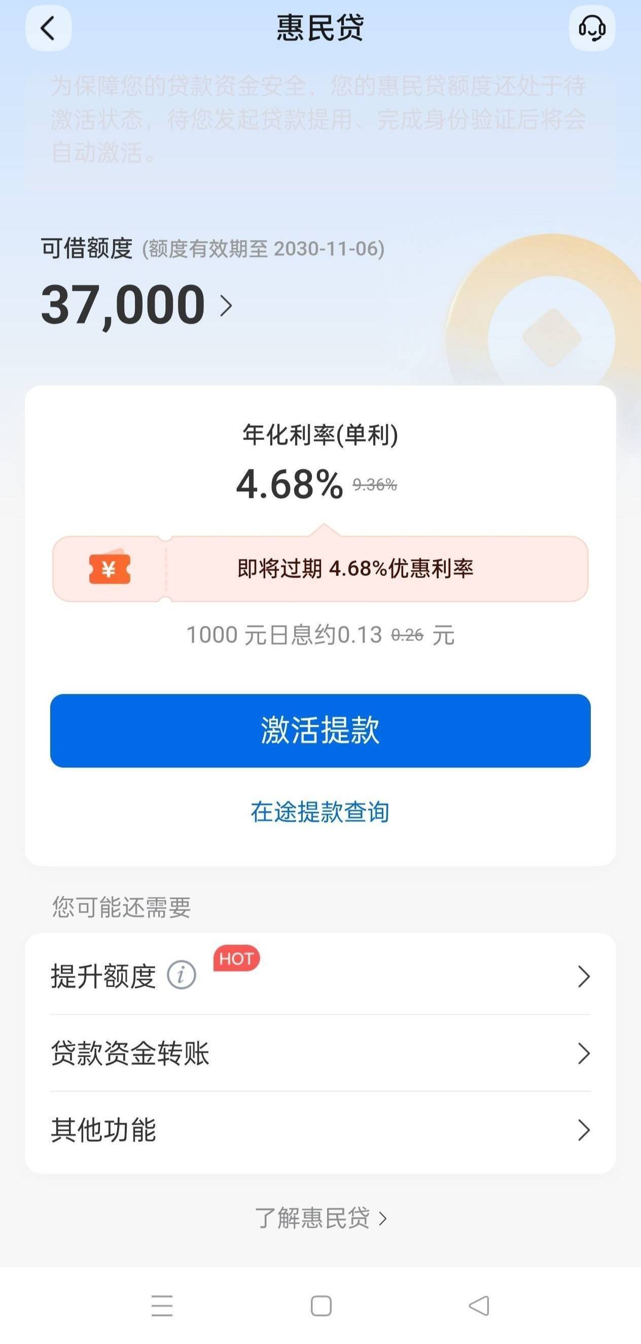 惠民贷批了,初始3.7提升额度到6.5。30多万负债。