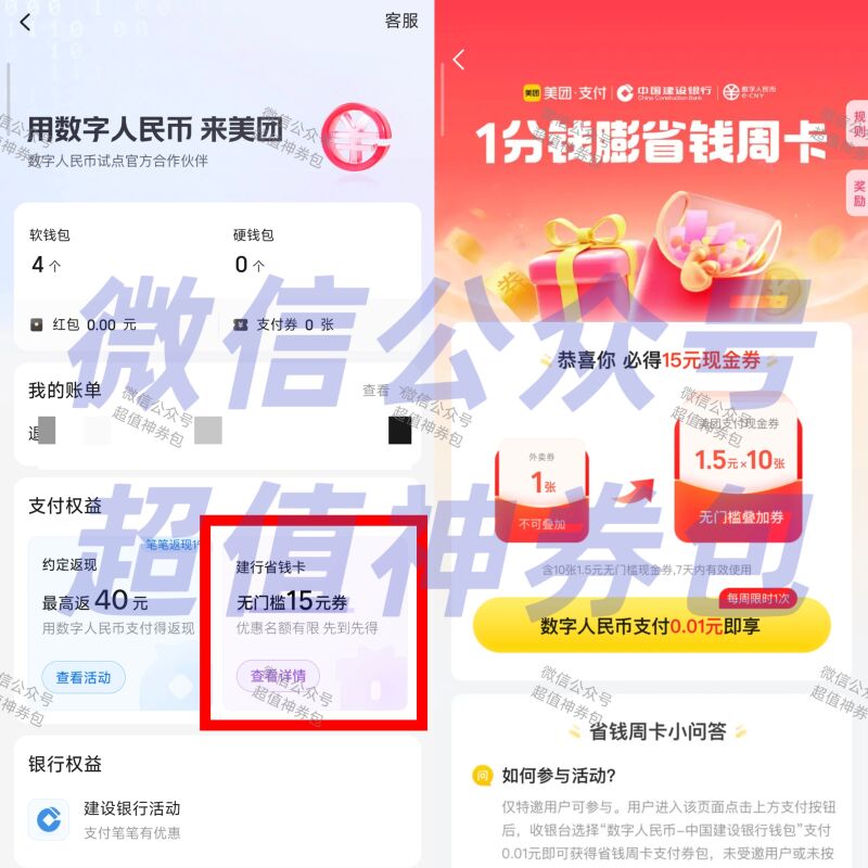 我发个小毛,丑团开了月付的领,领完劵后先在丑团买个火车票,然后把月付账单用建行数字钱包提前还款1.51/次,分10次还,1.51-1.5的劵好像要分两天才能抵扣完,然后还完十次后,去把火车票退款,这样这个10个1.5的劵退款就到丑团钱包了