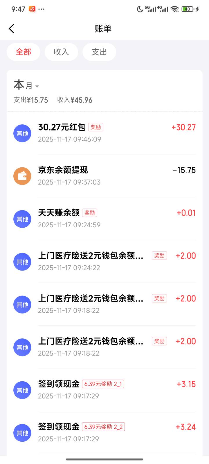 总共申请了50元了