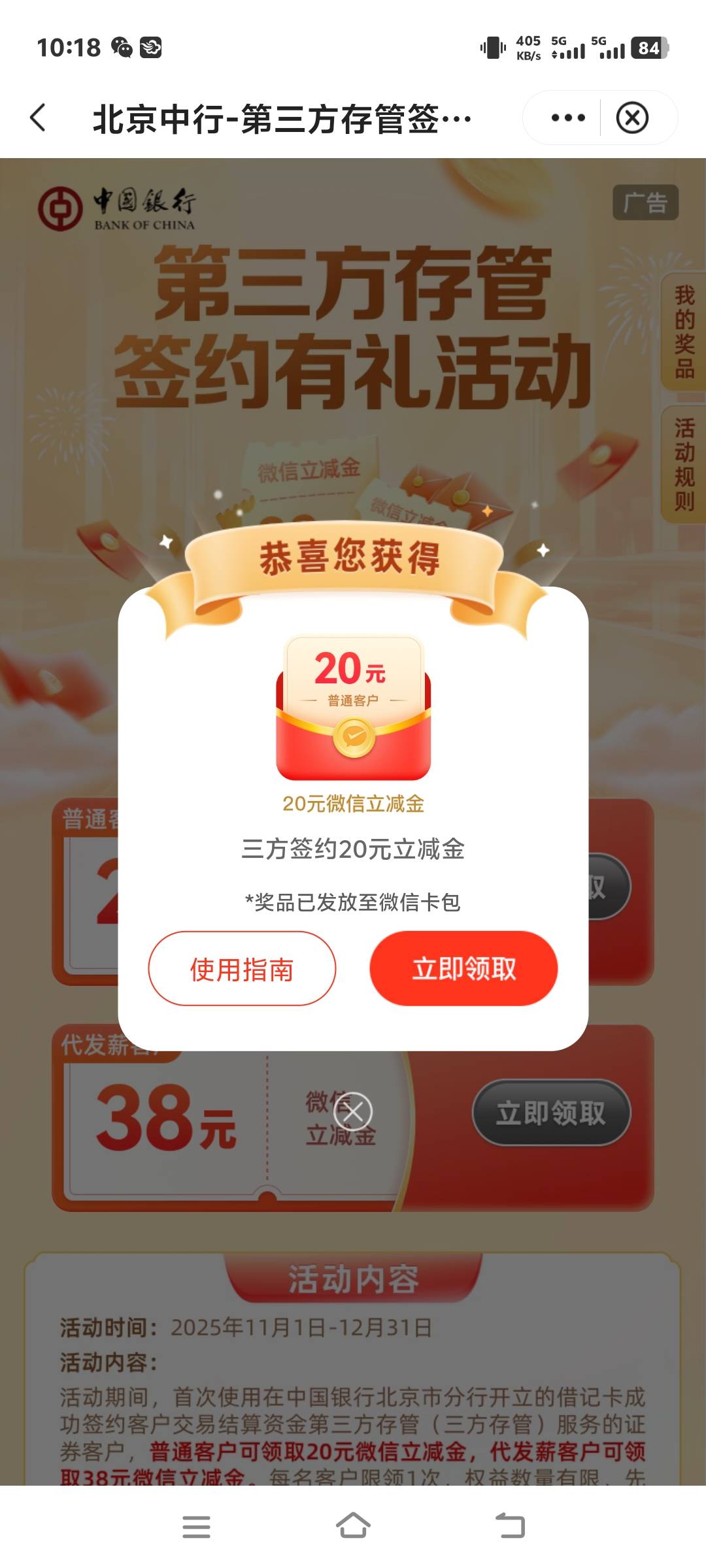老北京三方存管可以领了,电子二类,大概等了将近半个月啦吧