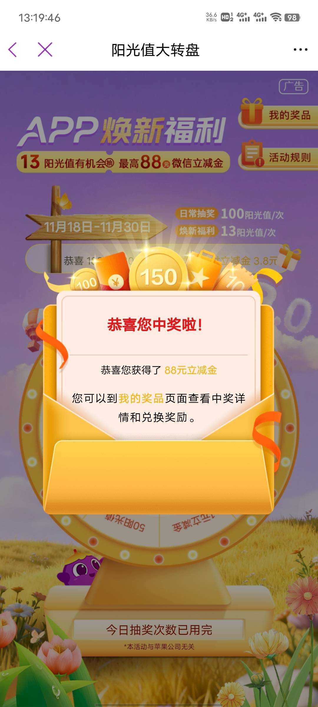 光大银行阳光值大转盘