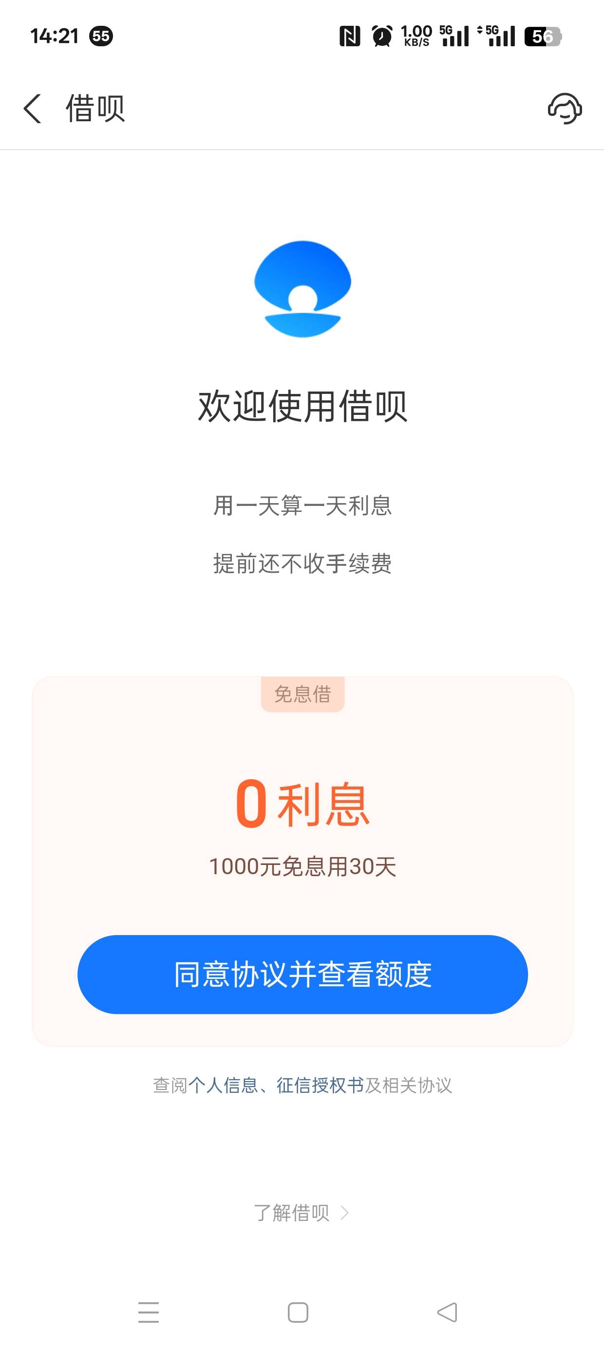 一次性的  1000一个月不用利息