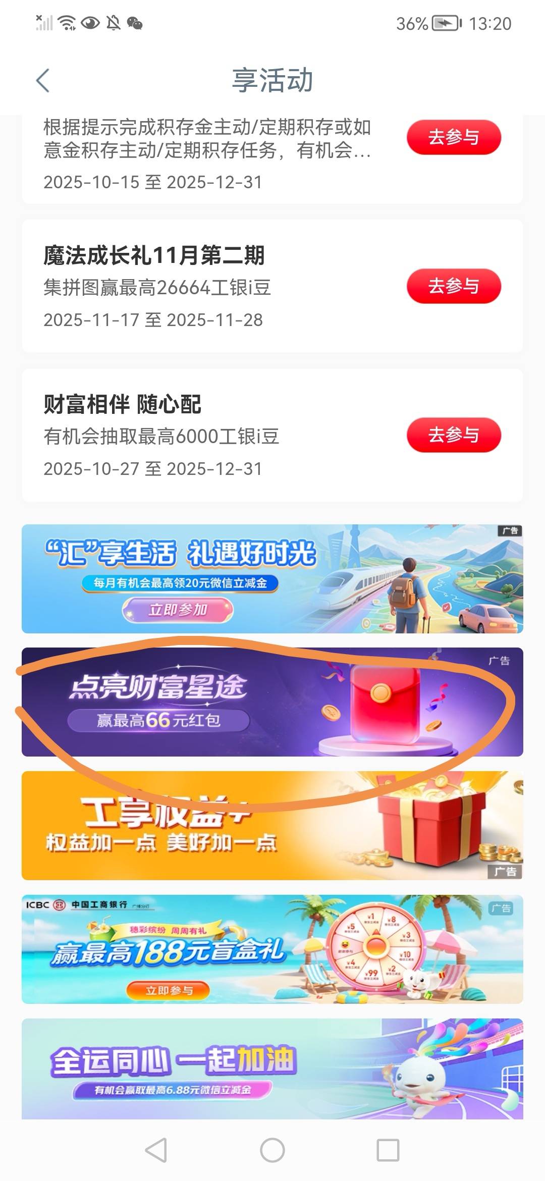 广州工行 任务中心 享活动  点亮财富星途