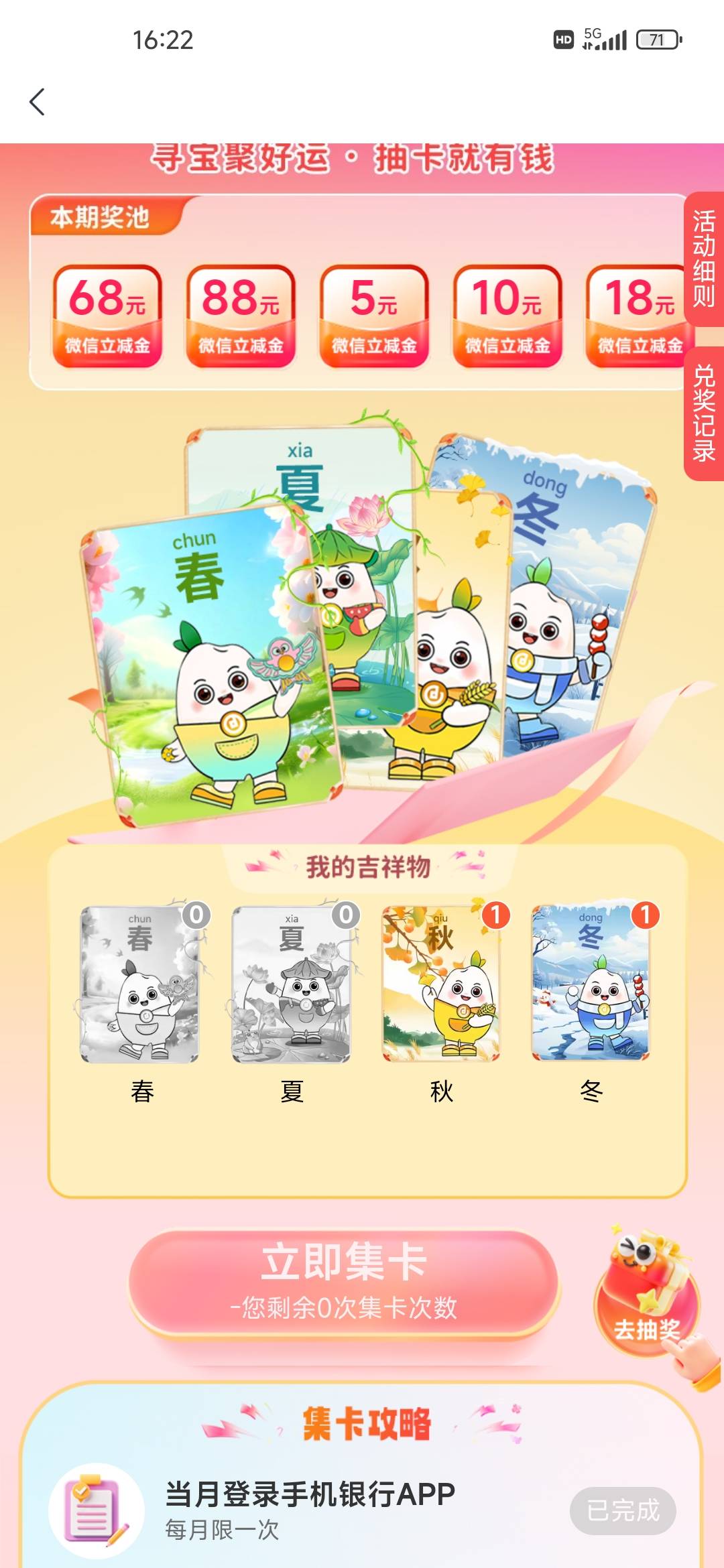 首发加精,成都农商银行横幅集卡活动,保底5,最高88