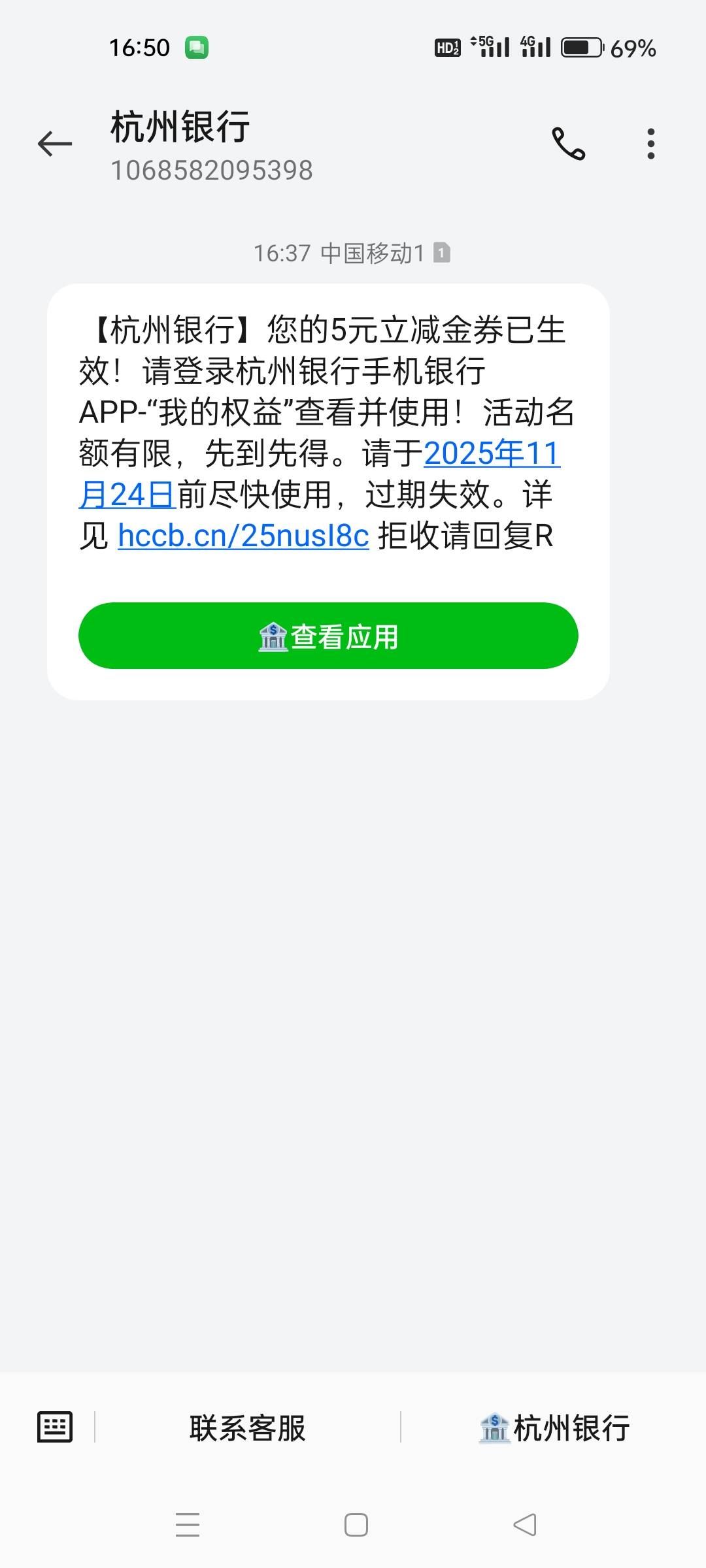 杭州银行5立减金,不知道是不是人人。