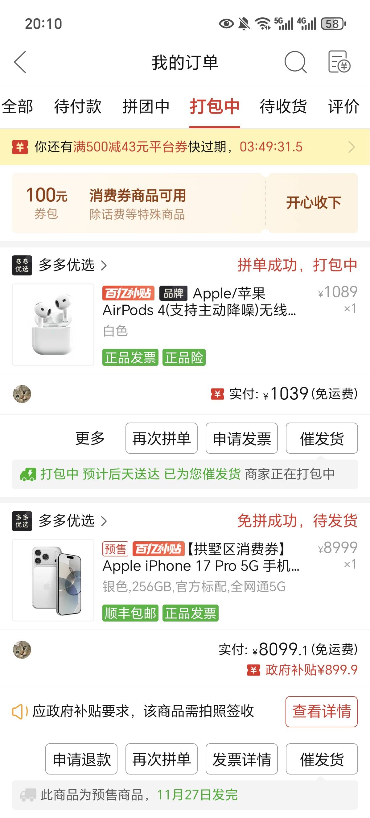 免费收一台iPhone 17pro