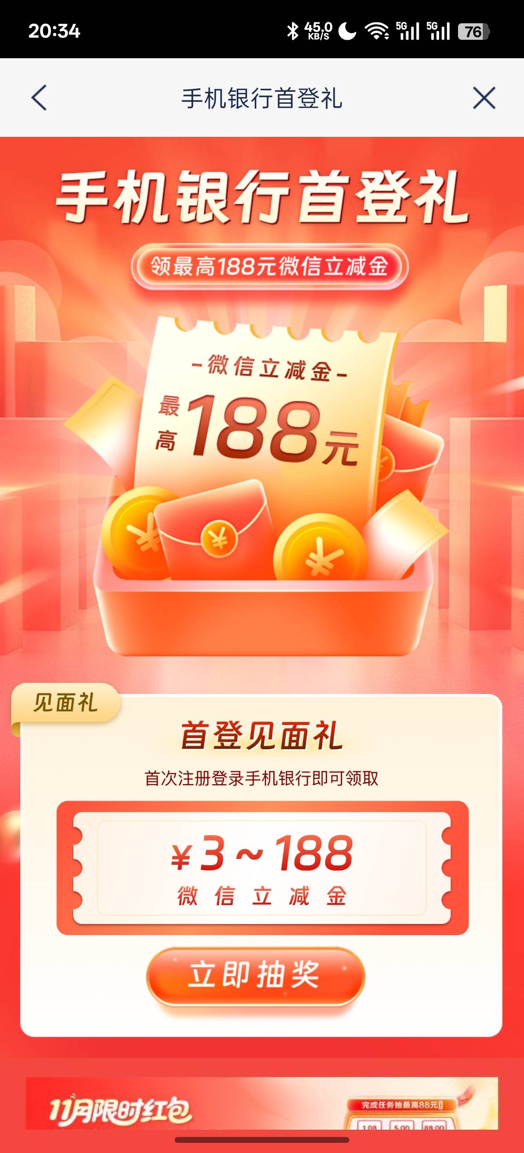 这里还有3毛,搜索手机银行首登礼