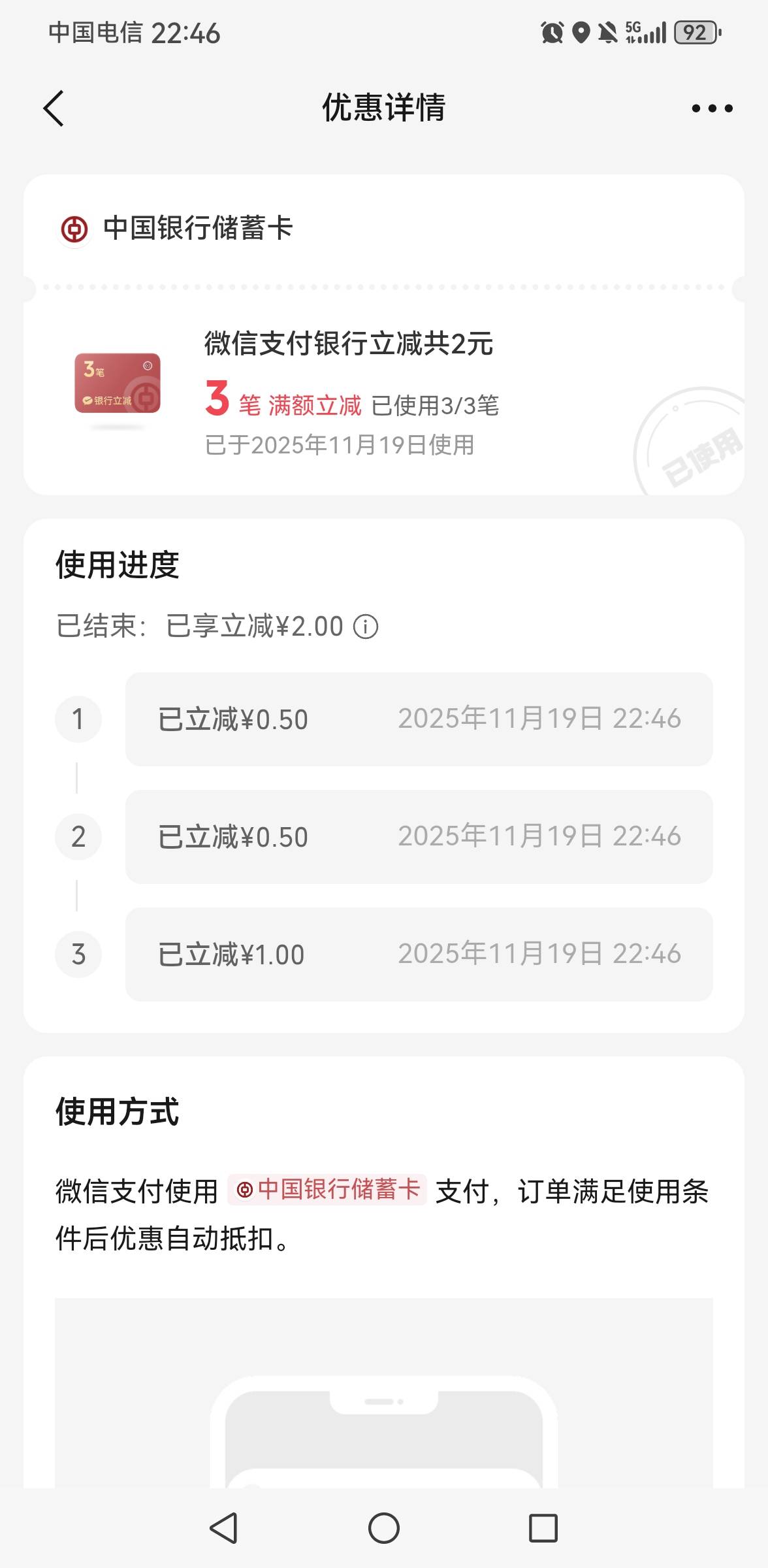 中国银行微信支付银行立减3笔共计2
