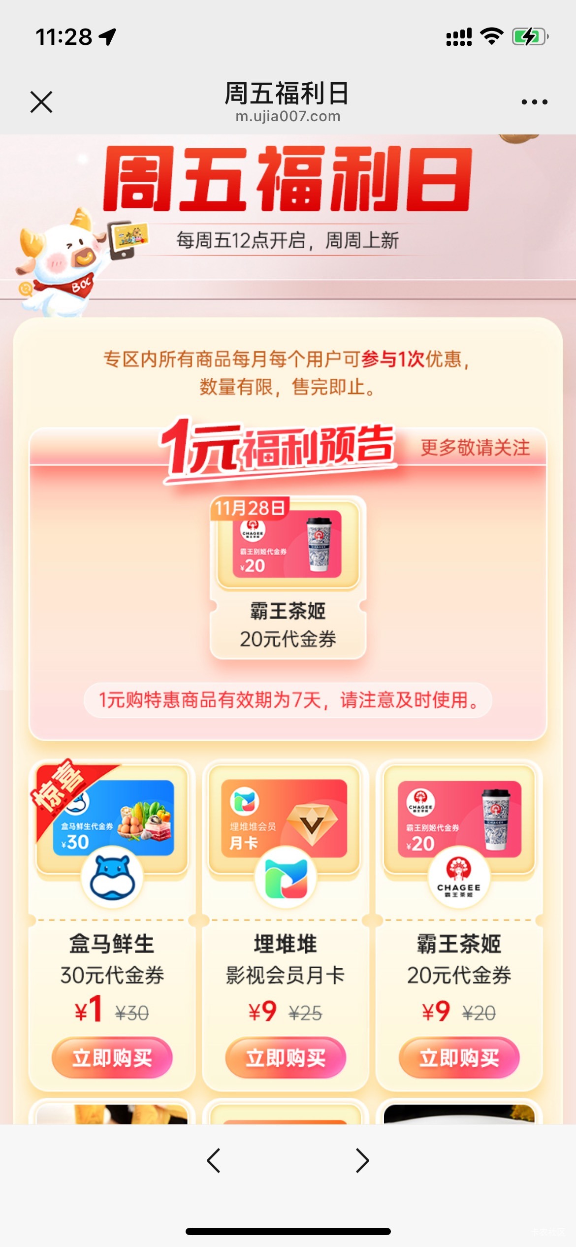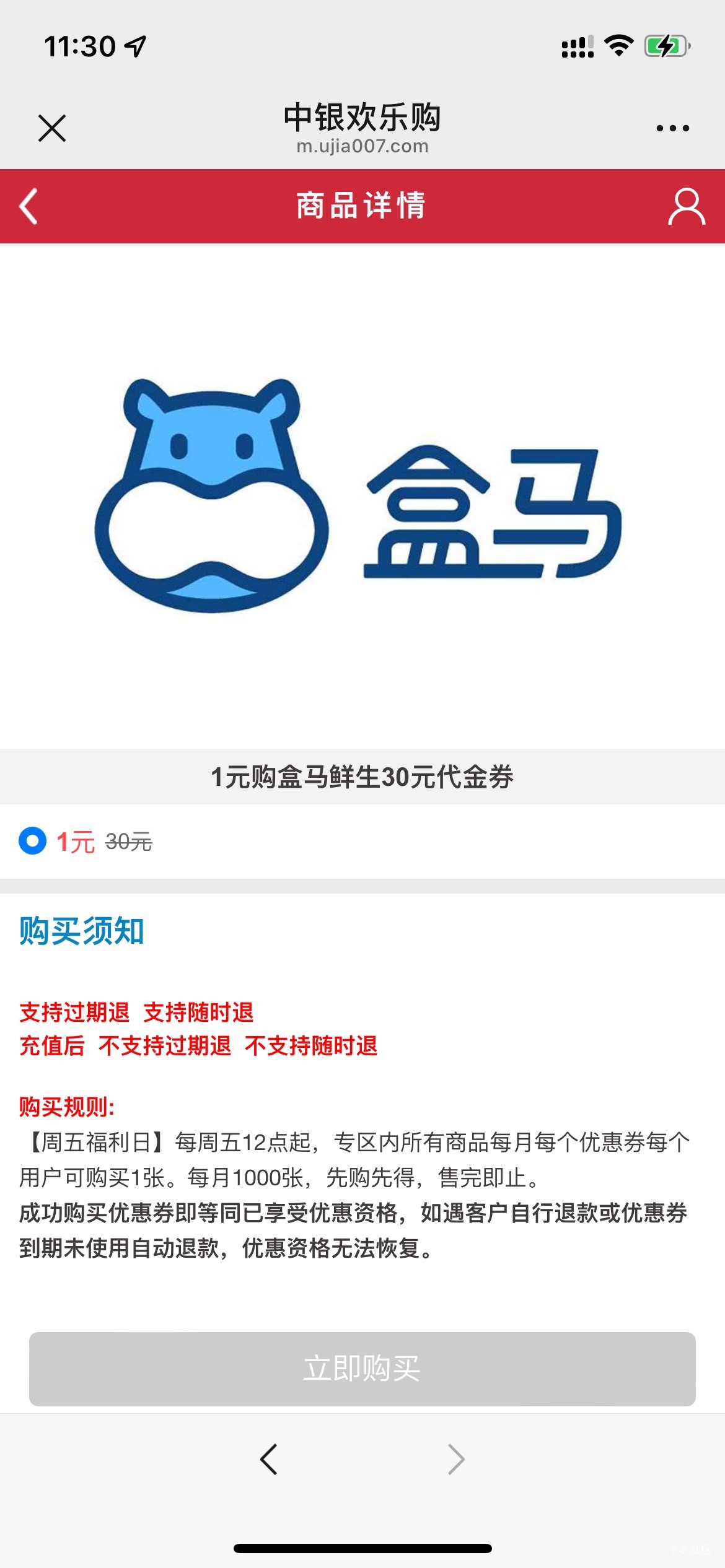 有深圳中行信用卡的,中午12点  深圳中行公众号   中银欢乐购   周五福利日  这期是1买30盒马卡