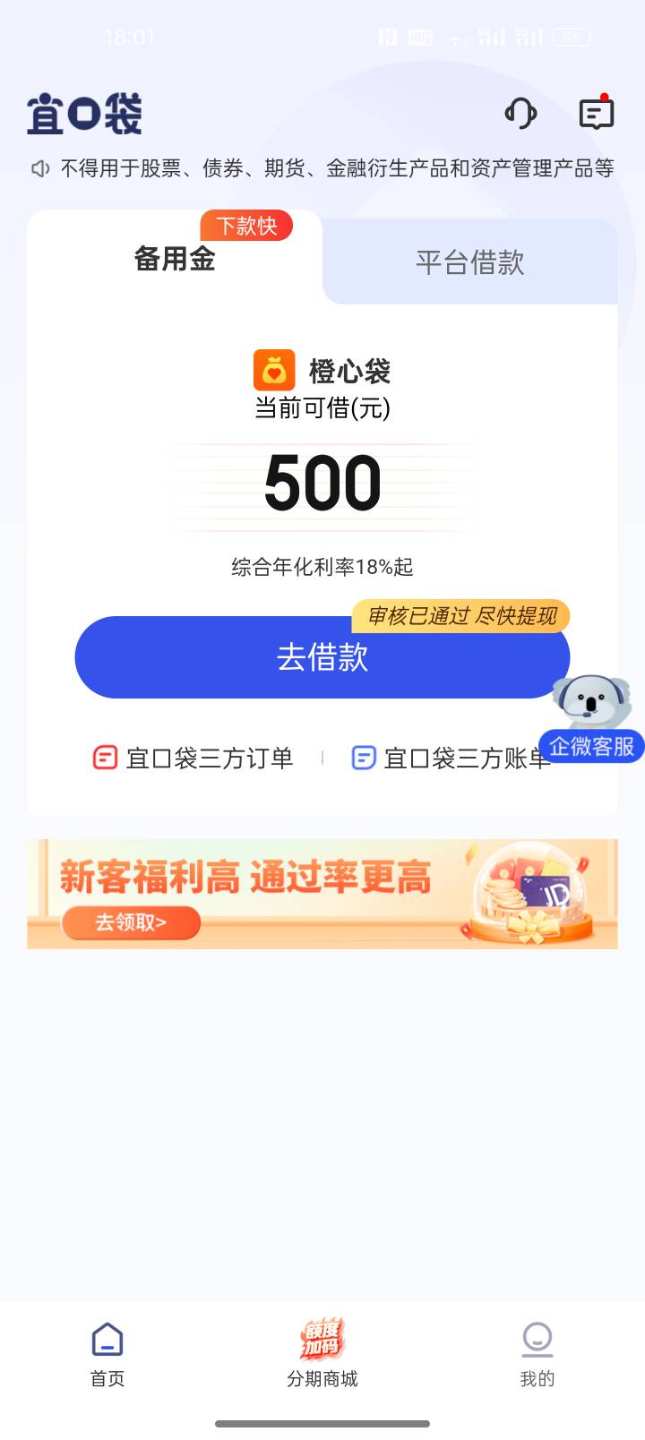 桔多多今天刚还完账单,宜口袋的打电话给我说有笔额度包下,我还以为是之前的额度能用了,结果一看就500还搞个毛