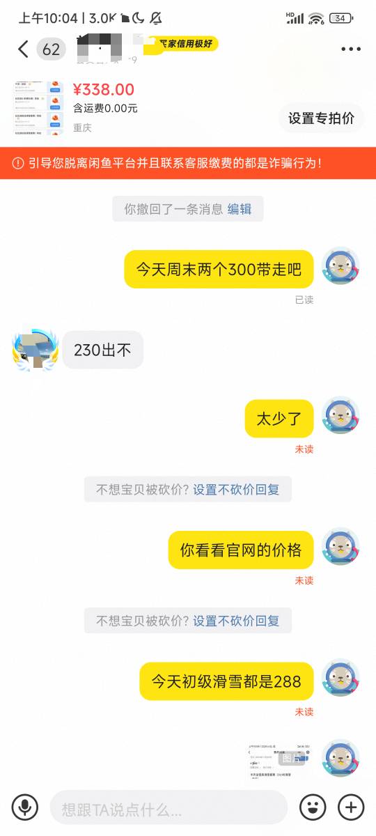 昨天娇娇抽的滑雪这二手贩子还想T路我