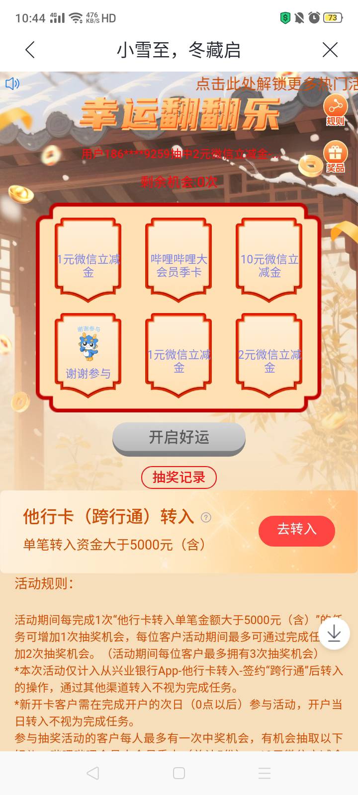 兴业小雪抽奖幸运翻翻乐中2