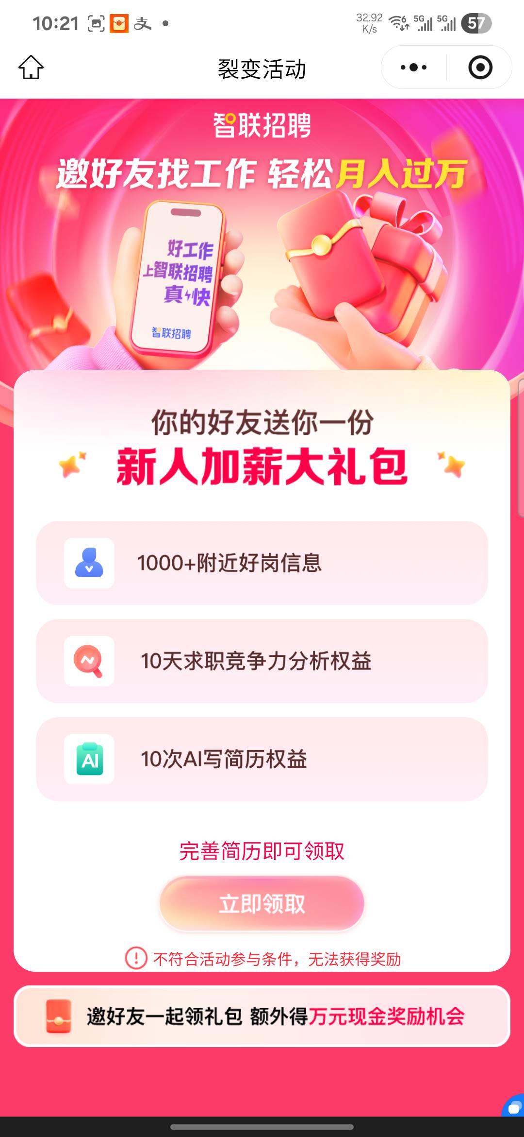 智联招聘小程序,拉新,大号拉小号,号多v多的可以搞,拉一个得10毛