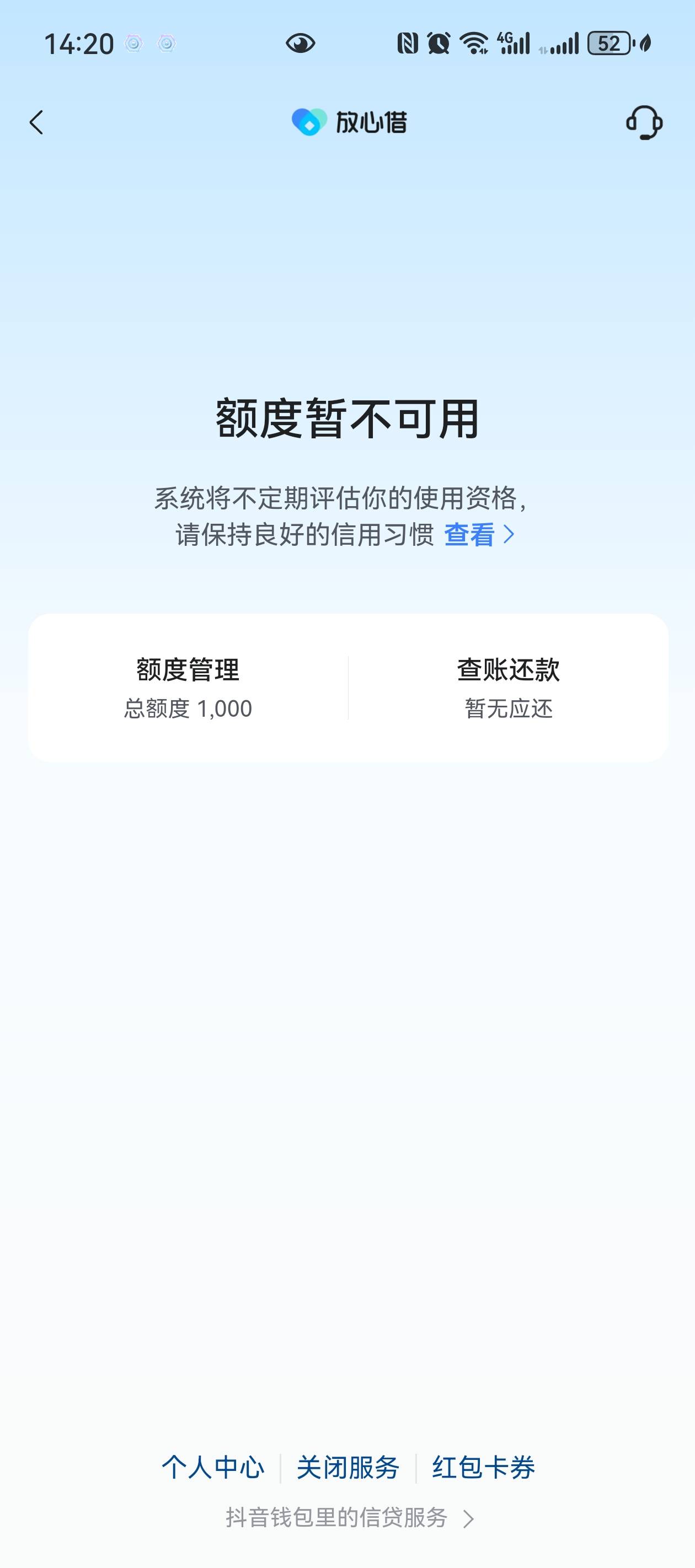 进去就是不符合,月付万年100额度,用了还了以后就不给用。