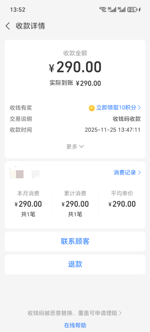 扣了当天打卡的10块只到290,不够用