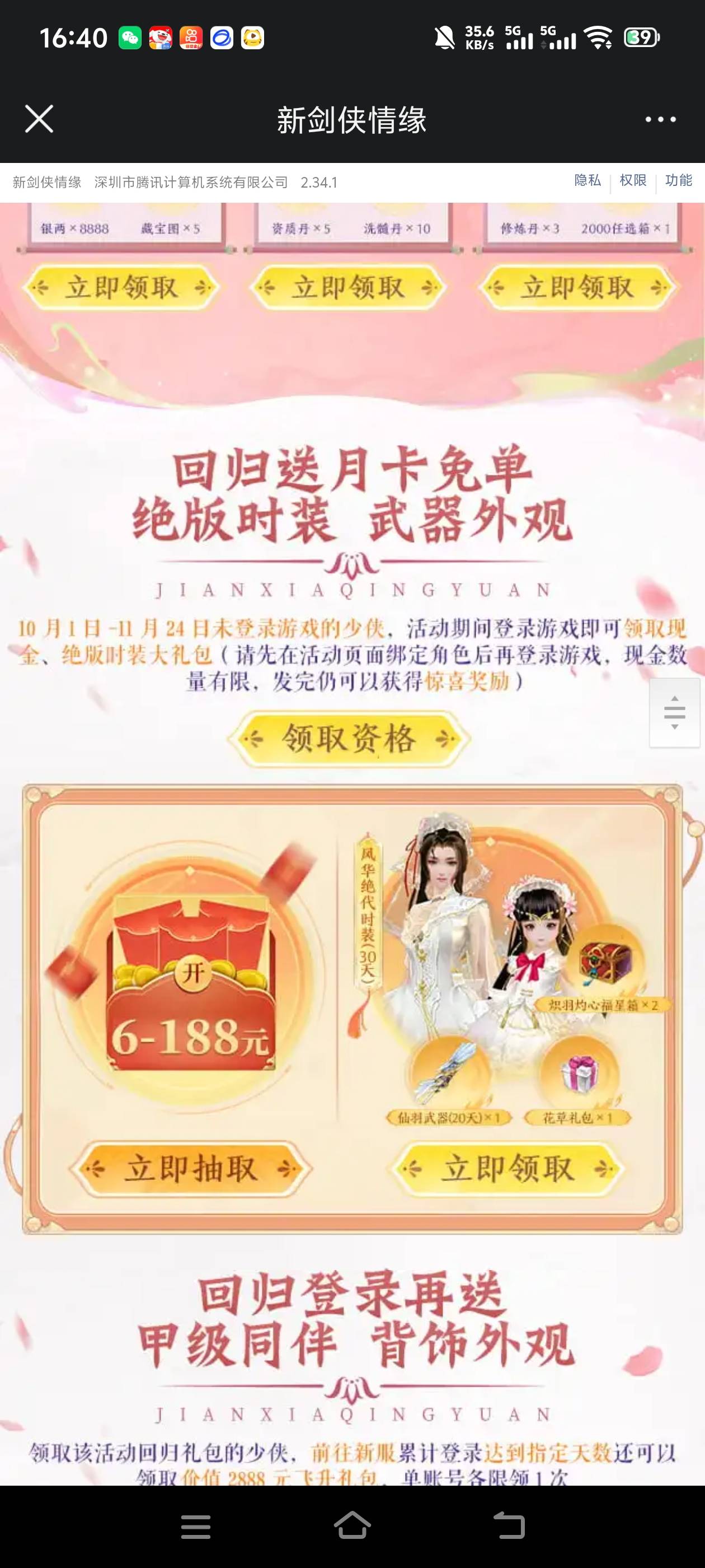 微信剑侠情缘11月新用户/回归:https://game.weixin.qq.com/cgi-bin/actnew/newportal
