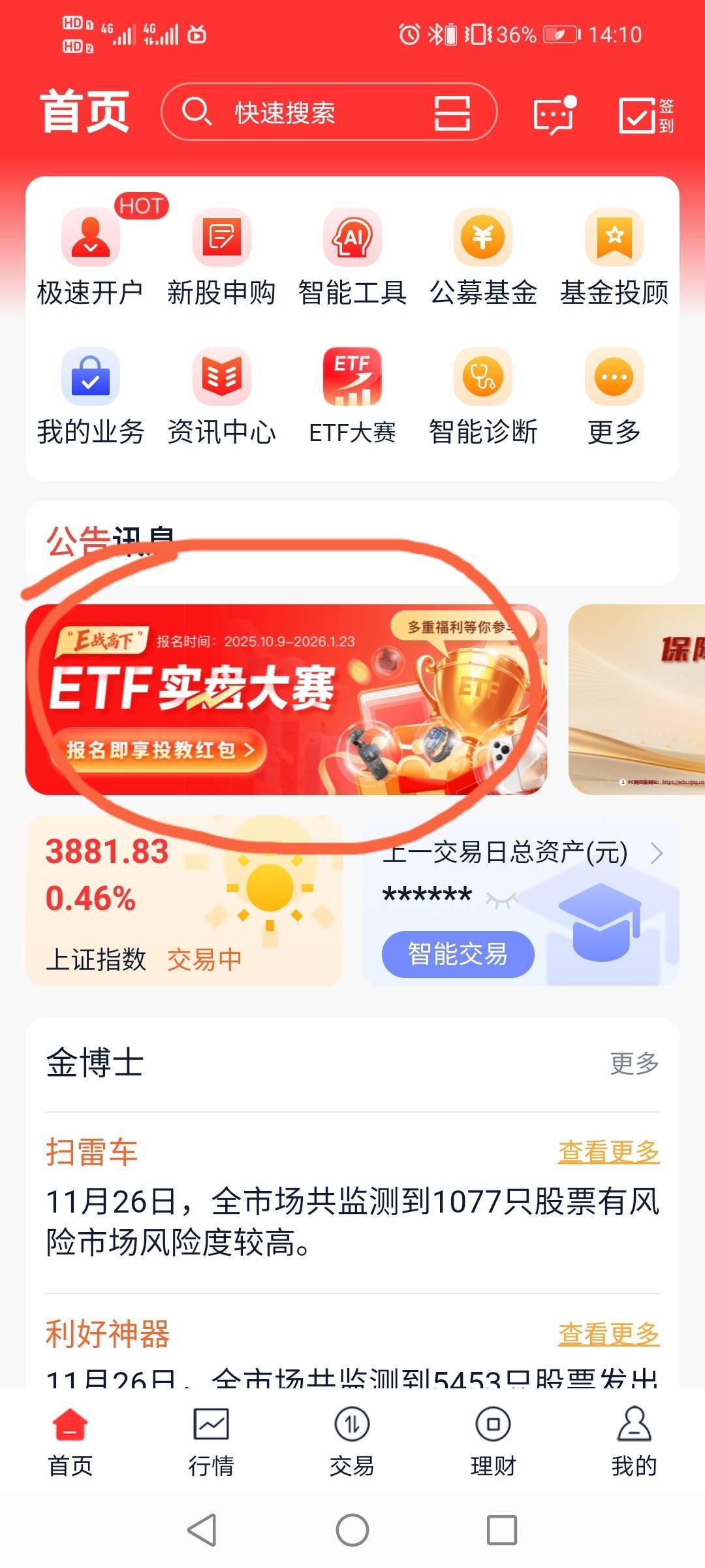 小毛,有南京证券的,下载南京证券金罗盘,首页ETF实盘大赛,报名后点下学.投教课程,